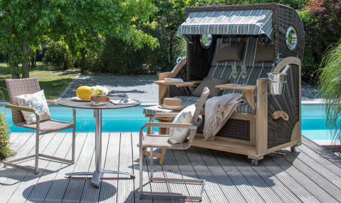 Mit einem Strandkorb oder Gartenmöbel der Firma